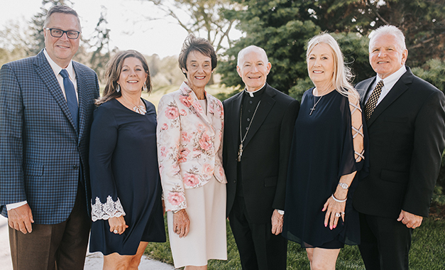The Archbishop’s Committee for Development (ACD) honored three couples June 4 at its 44th annual ACD Recognition Dinner at the Happy Hollow Club in Omaha. Archbishop George J. Lucas acknowledged Tammy and Drew Blossom, Barb Fitzgerald, and Mary Pat and Steve Heck for their leadership and generous contributions of time, talent and treasure to the Archdiocese of Omaha and related organizations.