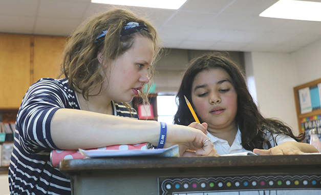 Blended learning not only guides teacher instruction, it also challenges and motivates students to deepen their skill sets. “When you get onto the next level it always feels good,” said Rosie Anderson, one of Wiester’s second graders at Holy Cross.