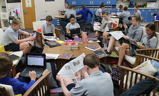 “We do read this (text)book and that teaches us about things that have happened in the past, about things that Jesus did in his life,” said Sam Schwartz, one of Menning’s seventh graders. “Reading the Catholic Voice teaches us about things that are happening now and how God is at work in our lives right now.”