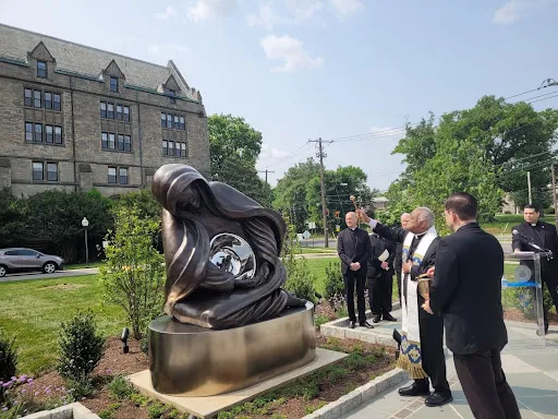 The new “National Life Monument,” a larger-than-life bronze sculpture depicting the Blessed Virgin Mary pregnant with the Christ Child, was unveiled and dedicated today on the campus of The Catholic University of America’s Theological College in Washington, D.C.