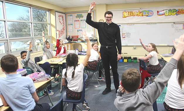 “Mr. Jamrog has been such a positive addition to the St. Cecilia Cathedral community this year, both in the parish and the school,” she said. “Seeing the collar in the classrooms on a weekly basis is something that not every school can offer and we are lucky to have Mr. Jamrog here with us, even for such a short amount of time. … The students enjoy seeing him so frequently and he has such a great voice for Catholicism.”