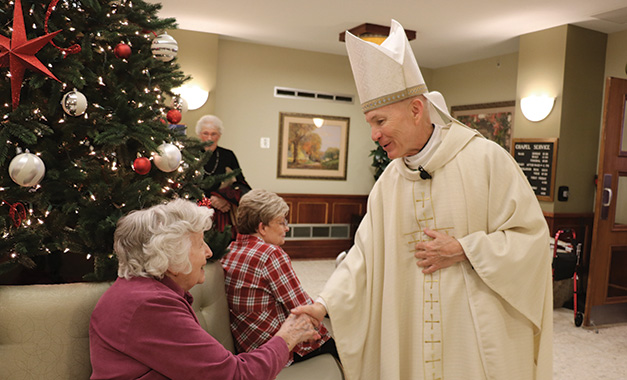 About 200 residents, family members and guests enjoyed a special Advent visit from Archbishop George J. Lucas Dec. 7 at New Cassel Retirement Center in Omaha.