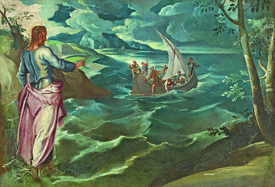 And yet Tintoretto shows Peter tentatively placing his foot upon the sea, commencing to walk toward Jesus. The great spiritual lesson – shopworn perhaps to the point of being a cliché, but still worth repeating – is that as long as the church keeps its eyes fixed on Christ, it can survive even the worst of storms. It can walk on the water.